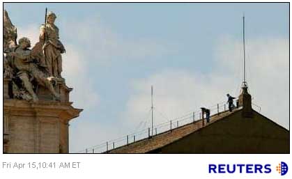 install a new chimney on top of the Vatican's Sistine Chapel, April