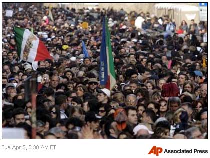 Tuesday, April 5, 2005 as they wait to say a personal farewell to